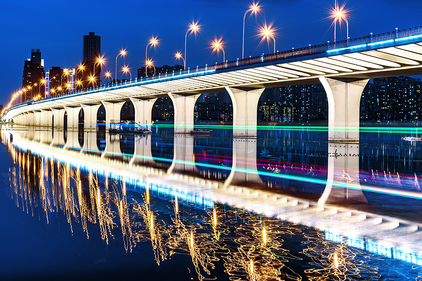 武漢航拍武漢東湖橋梁夜景照片
